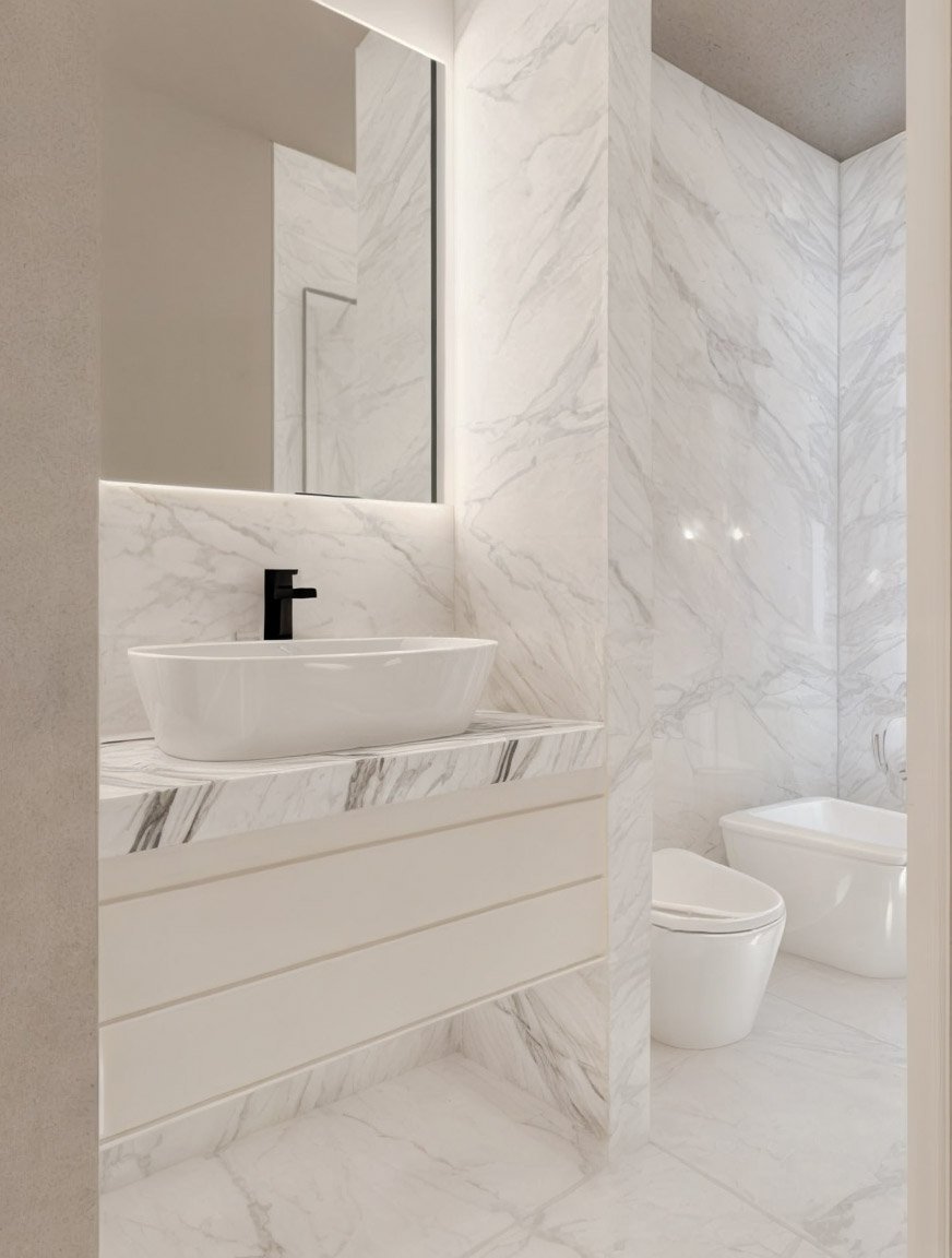 Baño: sanitarios Ferrum Bari, grifería Peirano, bacha DECA y bañera Ferrum.
