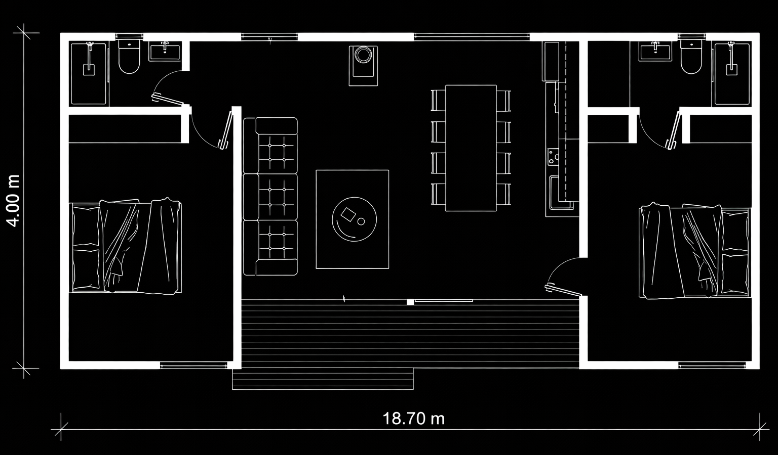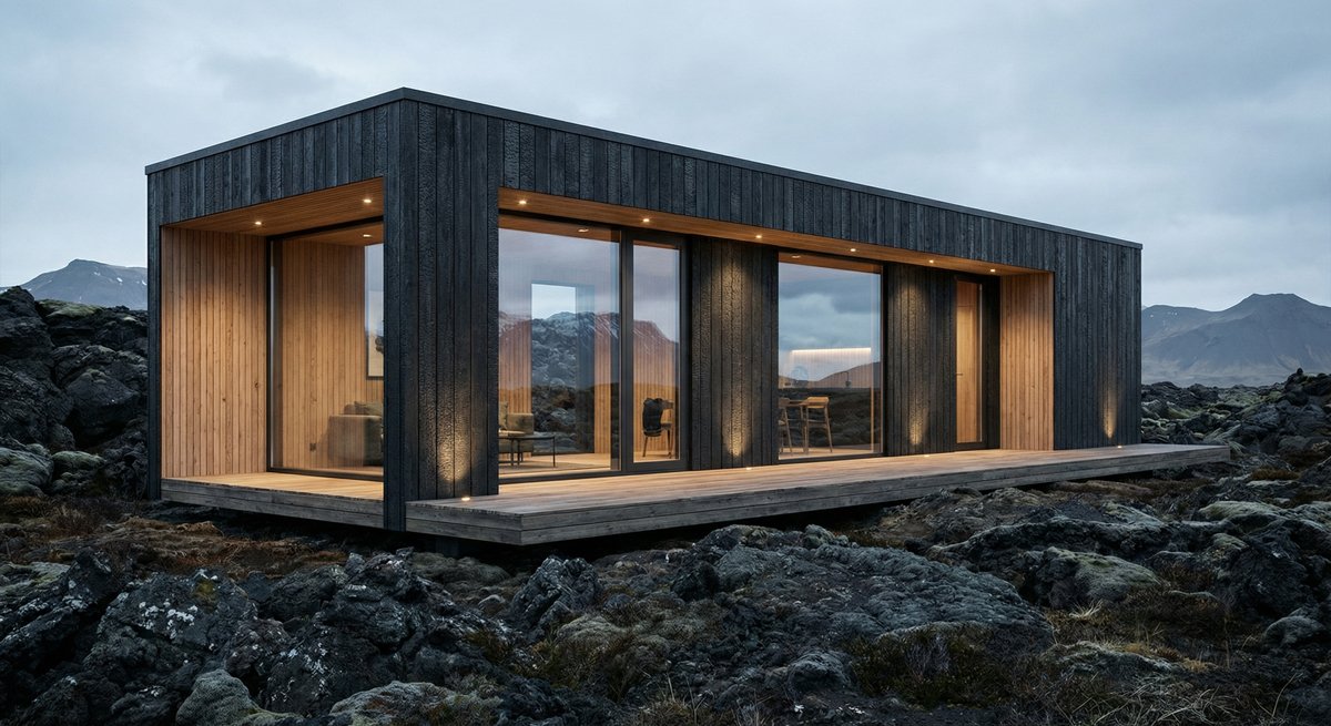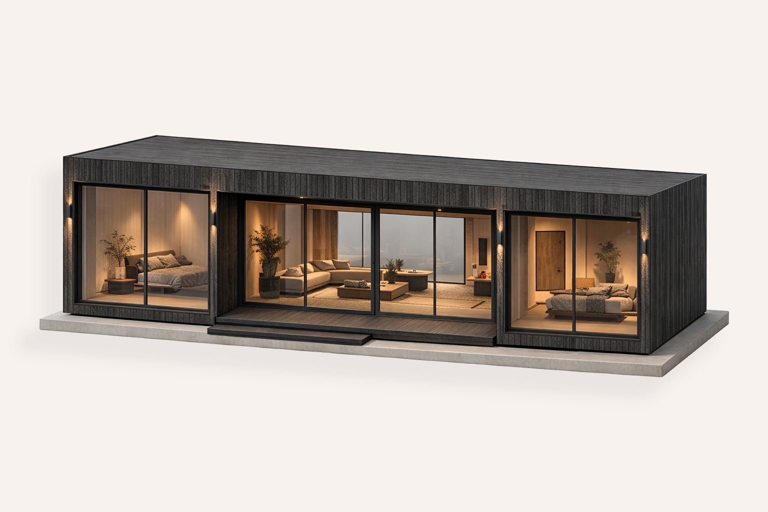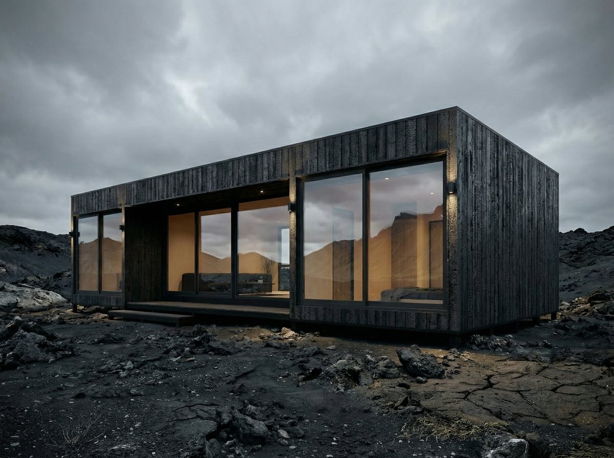 Ébano nace de la idea de habitar la naturaleza sin imponerse sobre ella. Su arquitectura modular, de líneas limpias y terminaciones en madera negra, se integra con serenidad al paisaje. Dos habitaciones, una de ellas en suite, y una segunda habitación con acceso directo a un baño de servicio. Área social amplia, integrada y luminosa, con living, comedor y cocina.